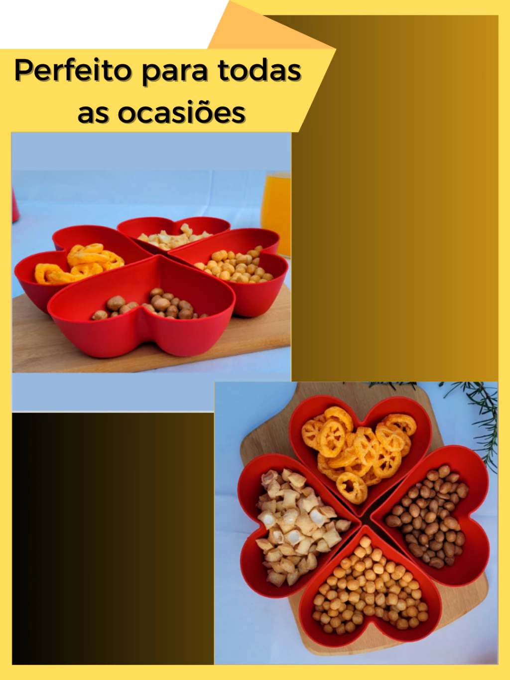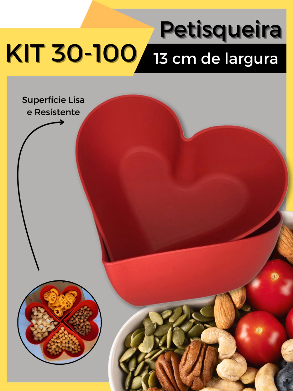 Modelo: Com um design único em forma de coração, este modelo exclusivo adiciona um toque de sofisticação à sua mesa, garantindo que seus petiscos sejam servidos com estilo.